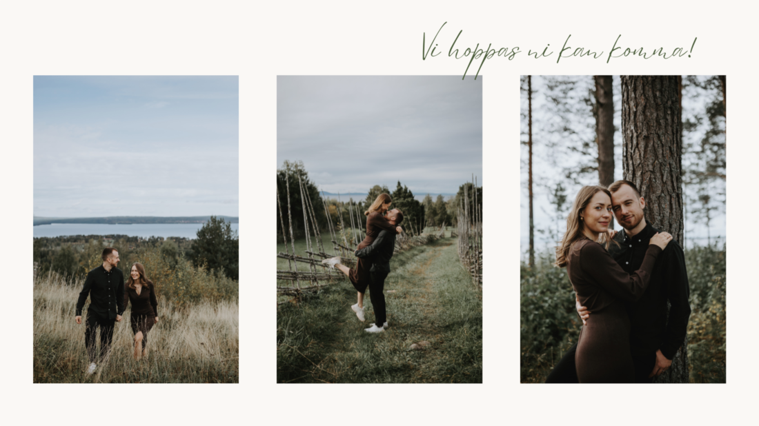Vad kul att ni har hittat till vår bröllopshemsida! Här har vi samlat all information om bröllopshelgen, och det är här ni OSA:ar.
